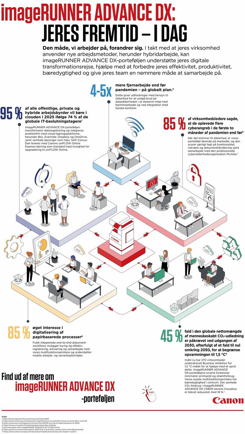 Få mere at vide om, hvordan imageRUNNER ADVANCE DX-porteføljen muliggør avancerede cloud-tilslutninger og understøtter produktivitet, effektivitet og sikkerhed i disse hybride miljøer, samtidig med at den hjælper jeres virksomhed med at tage det næste skridt på jeres digitale transformationsrejse.