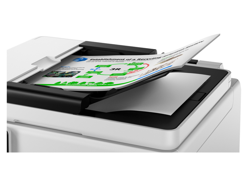Kompakt størrelse, men med mange funktioner – du kan nyde en 50-arks automatisk dokumentfremfører, en brugervenlig 6,9 cm farvetouchscreen, der kan vippes og en papirforsyning på op til 350 ark